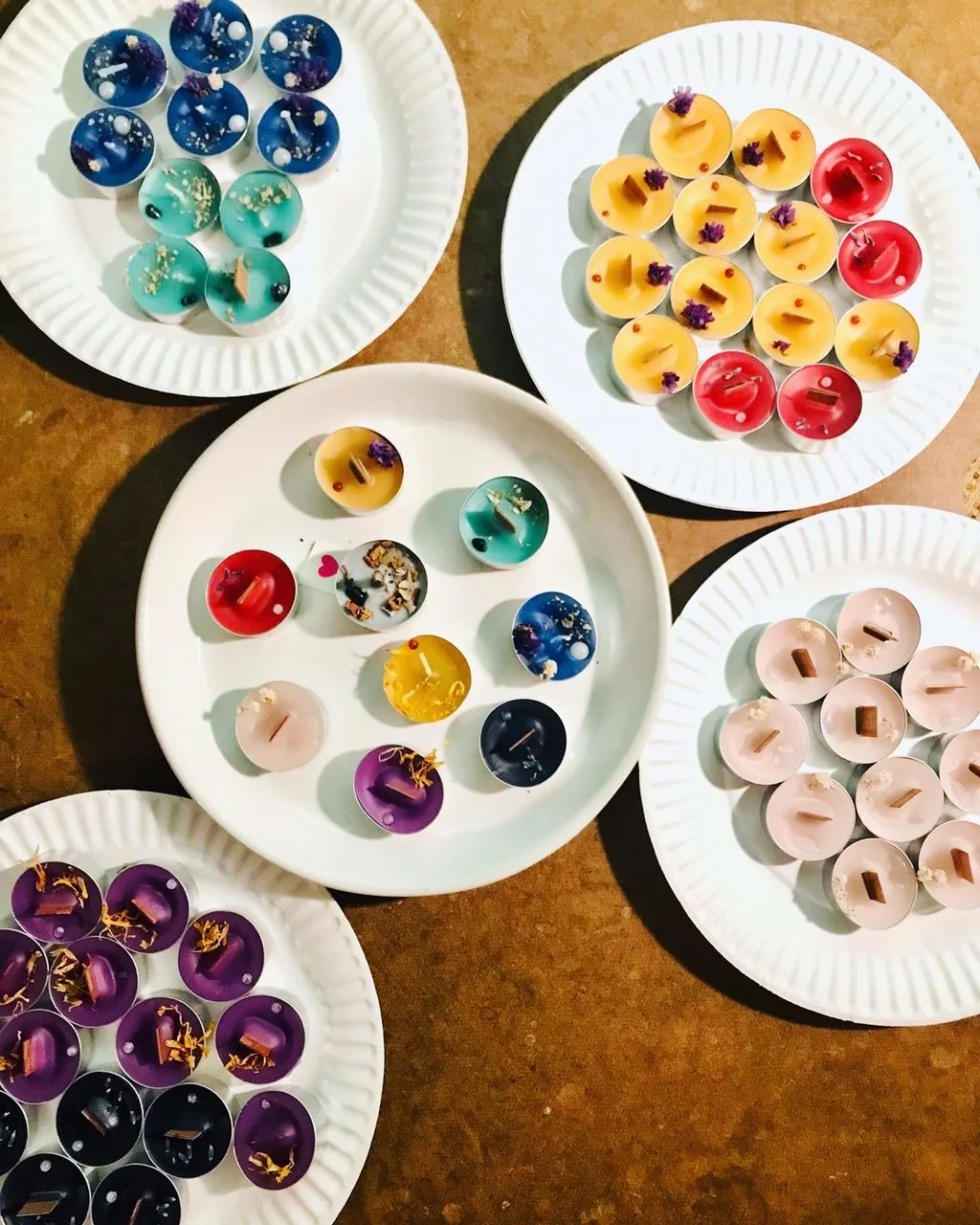 Brennah crafts each and every custom tea light candle with love and intention with local beeswax. They can be infused with flowers, herbs, stones and more.
